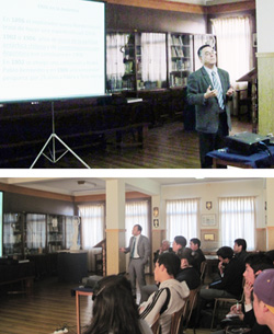 Pablo Mancilla y Mauricio Jara participaron el jueves 12 de septiembre en el Curso ‘Acercamiento al Mar' con la charla titulada “Territorio Antártico Chileno”, la cual es parte de la difusión del proyecto de investigación Fondecyt Nº 1120080.