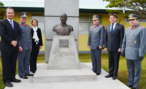 A la izquierda (de afuera hacia adentro): Ricardo Cañas Cambiaso, Ramón Cañas Cambiaso y Mónica Cañas Cambiaso (los tres son nietos; el padre de ellos se llamaba Ramón Cañas Suárez).A la derecha (de afuera hacia adentro): General de Brigada Felipe Arancibia Clavel Comandante en Jefe de la V División de Ejército. Claudio Radonich Jiménez Intendente Región de Magallanes y Antártica Chilena. General de Brigada Alberto González Martin CAF (Comando de Apoyo a la Fuerza).