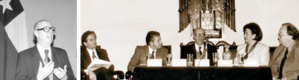 Fotos superiores: El embajador Pinochet de la Barra participó con una conferencia inaugural en el 'Seminario: 50 Años de Presencia de Chile en la Antártica', realizado en el Salón de Honor de la Ilustre Municipalidad de Valparaíso, el 2 de septiembre de 1997. En aquella ocasión, el programa de conmemoración por la primera base chilena en la Antártica también incluyó presentaciones del embajador Fernando Zegers, Consuelo León, Emilio Kopaitic, Mauricio Jara, Enrique Cordovez Pérez y Hamish Stewart.